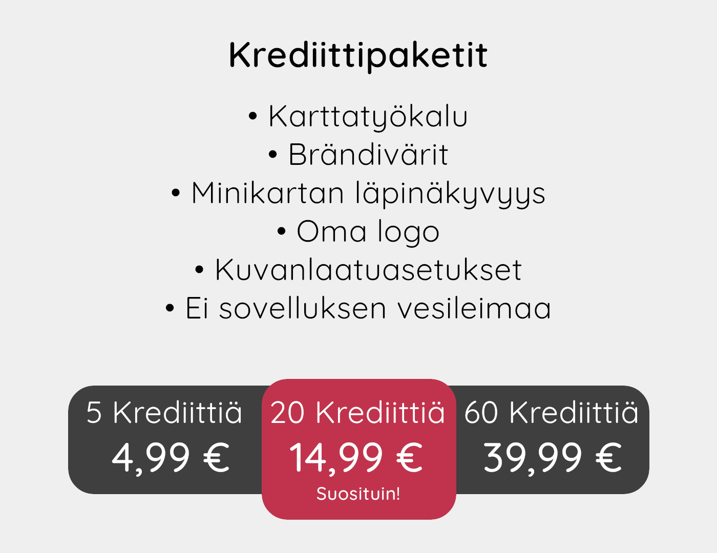 Maksullisia ominaisuuksia käytetään Krediittien avulla, jotka mahdollistavat muokattujen kuvien tallentamisen.