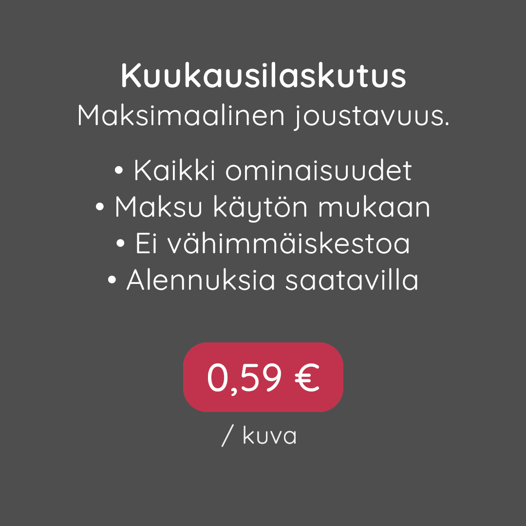 Anna meidän hoitaa kuviesi käsittely Minimapperilla, jotta voit itse keskittyä olennaiseen. Maksu kätevästi laskulla.